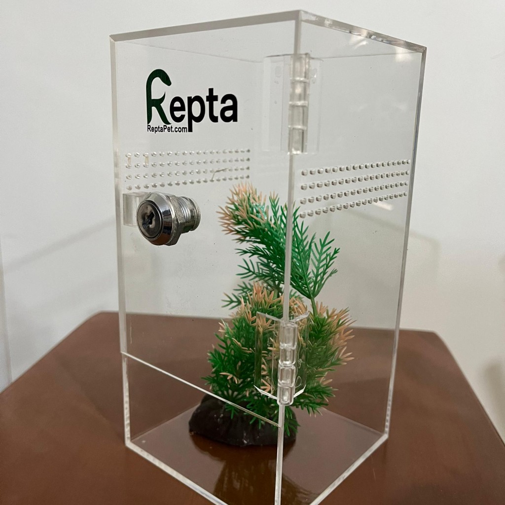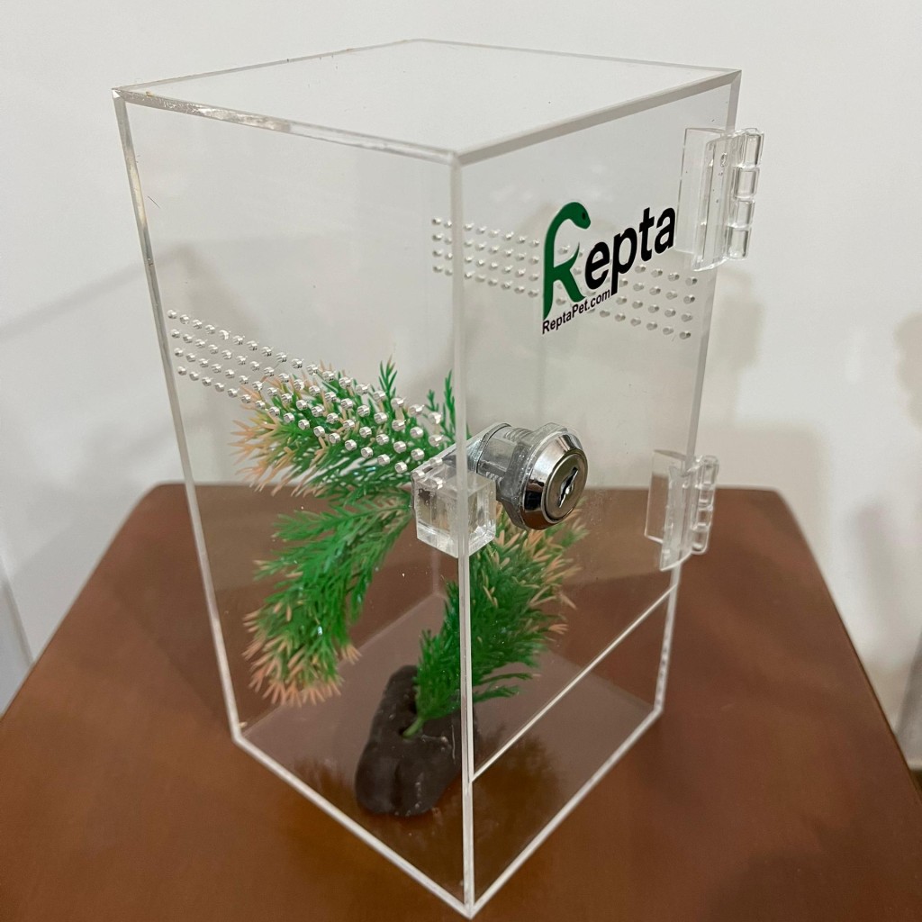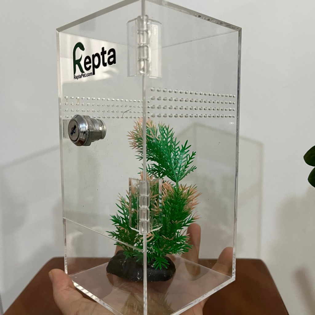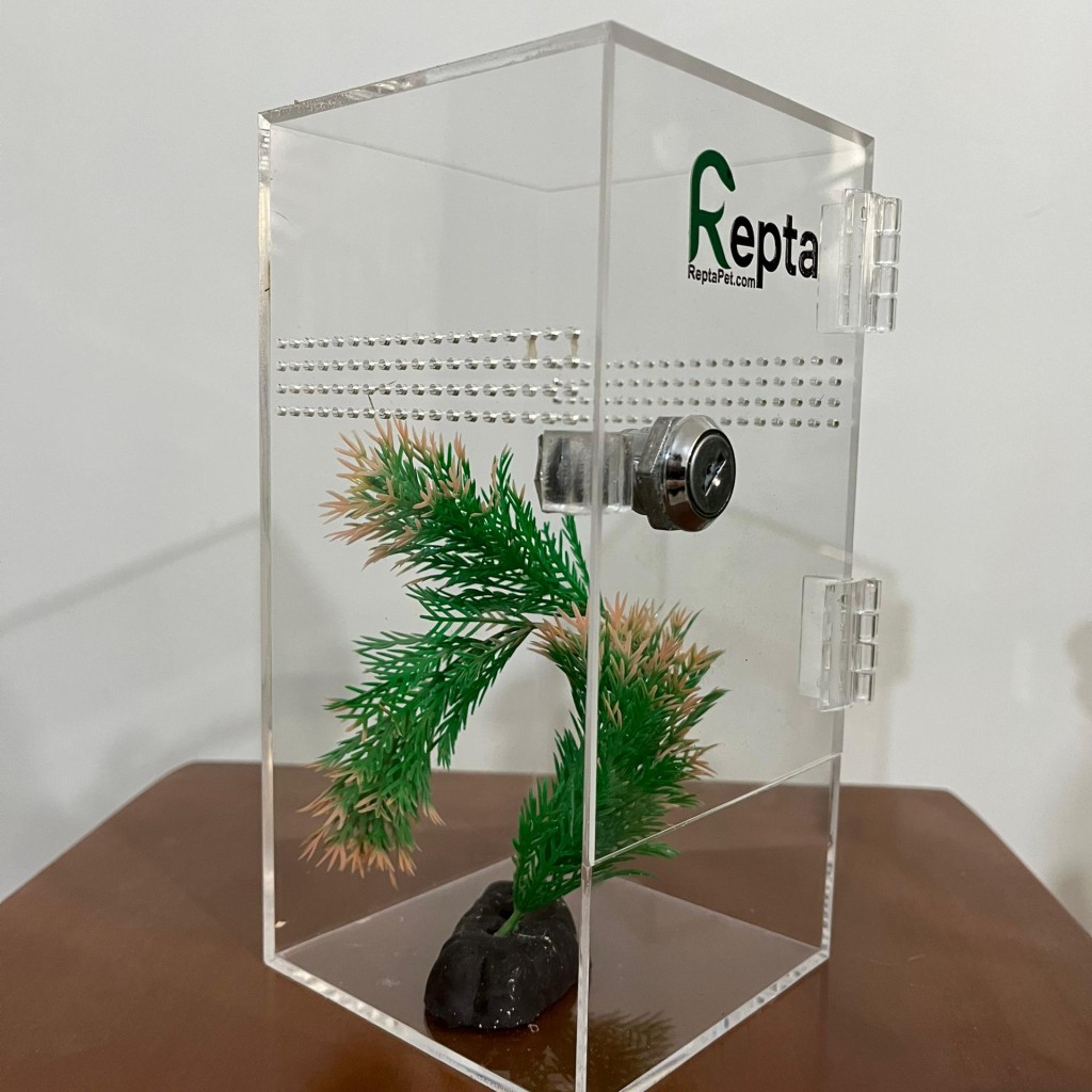 این باکس جمعوجور از جنس پلکسی شفاف با ابعاد ۱۰×۱۰ با ارتفاع ۲۰ سانتیمتر طراحی شده و گزینهای ایدهآل برای نگهداری گونههایی مانند گکو، عقرب و تارانتولا است. تهویه مناسب در چهار طرف باکس به حفظ جریان هوا کمک کرده و محیطی سالم برای حیوان فراهم میکند. درب باکس بهصورت لولایی و قفل دار و کشویی قابل سفارش میباشد تا دسترسی آسان و ایمن به داخل فراهم باشد. این محصول قابل سفارش با جزئیات دلخواه است و برای علاقهمندان به حیوانات خاص گزینهای کاربردی و زیبا به شمار میرود.